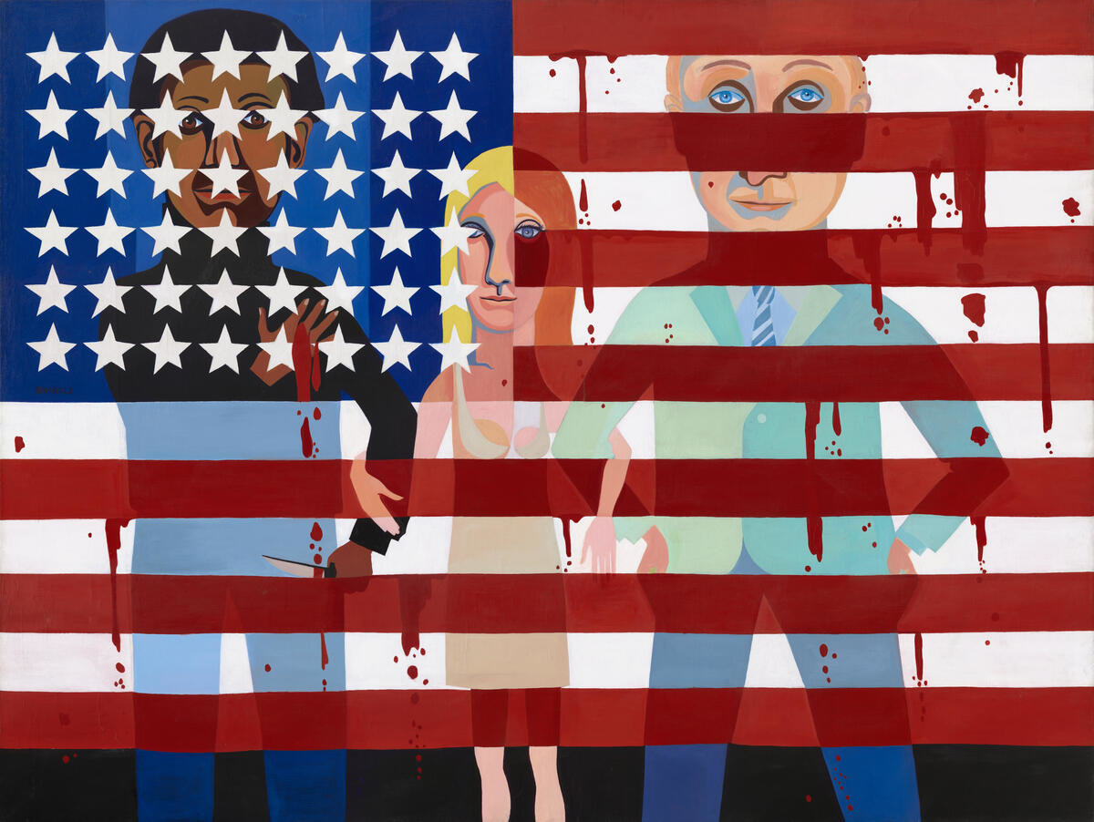 Faith Ringgold (American, 1930–2024), American People Series #18: The Flag is Bleeding, 1967, oil on canvas, 182.88 × 243.84 cm (72 × 96 in.). National Gallery of Art, Gift of Glenstone Foundation and Patrons' Permanent Fund, 2021.28.1. © 2026 Anyone Can Fly Foundation / Artists Rights Society (ARS), New York