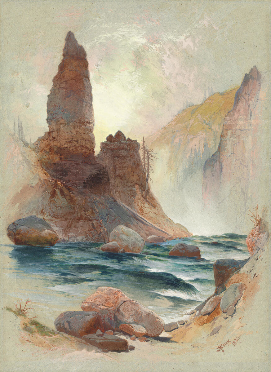 Thomas Moran saw the wondrous landscape that the world would come to know as Yellowstone National Park for the first time in the summer of 1871. He had journeyed west to join F. V. Hayden's survey expedition bound for a region rumored to contain steaming geysers and boiling mud pots. Traveling by train and stagecoach, he arrived in Virginia City, Montana, where he met William Henry Jackson, a young photographer whom Hayden had hired to document the purported "Wonders of Yellowstone." Moran and Jackson quickly became a team, working side by side to select subjects for photographs and sketches. Together they gathered the first visual evidence confirming stories of an astonishing region in the Far West full of geological marvels.